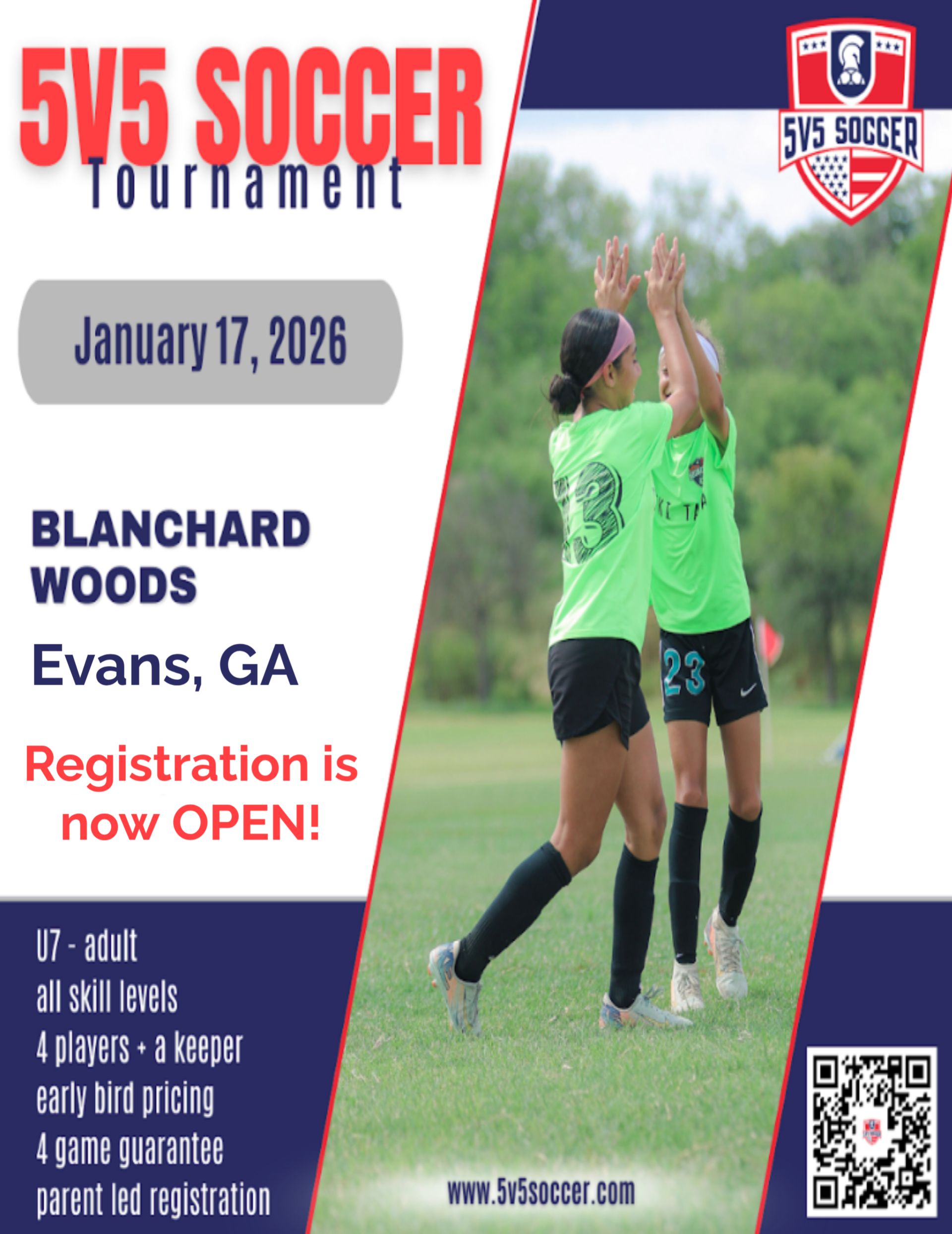 All skill levels welcome. Let’s play! Register your team today and kick off the new year with soccer! Early Bird discounts going on now!